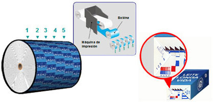Cada rollo de una bobina recibe una numeración (1 al 5) que permite identificar en qué posición de la bobina fue producido un determinado envase.